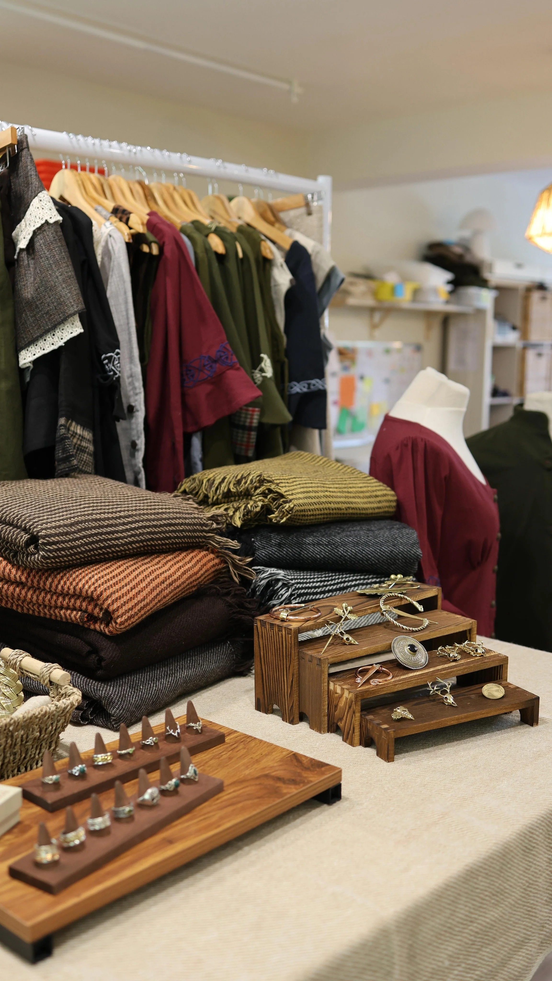 Every piece is crafted with care, reflecting our commitment to sustainability, slow fashion, and ethical production using natural materials like tweed, linen, jute and cotton, accented with brass details and Celtic symbolism.