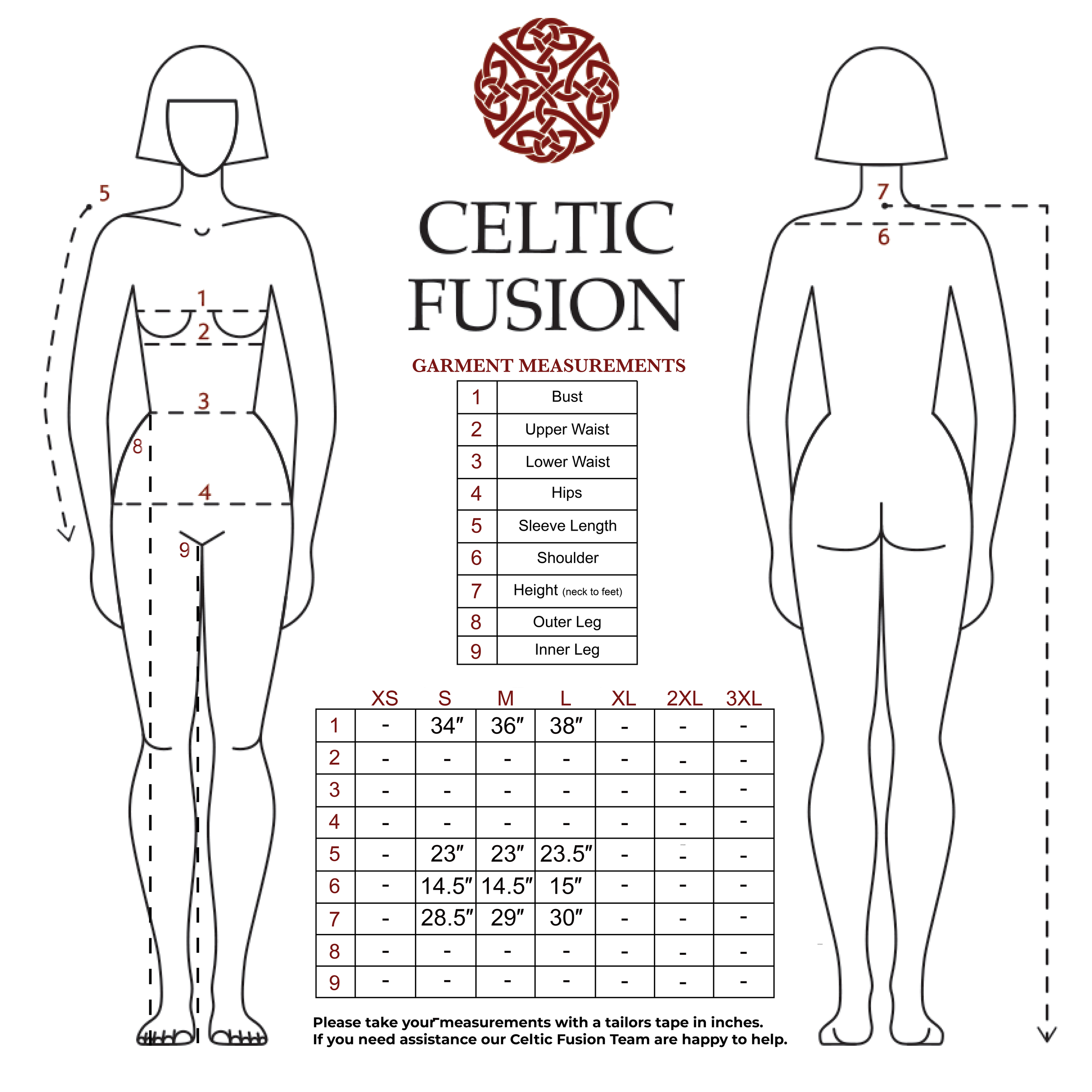 Size Measurements (in inches)